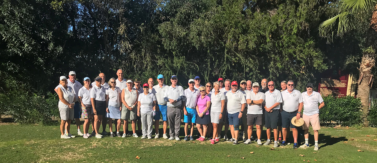 7.11.22 – Today was the La Marina Golf Society’s event of the year, Captain’s Day. The early morning started with 9 holes on the par 3 at the El Plantio Golf course, followed by breakfast. Next, the 32 players made their way onto the 1st tee for a photo shoot, then proceeded to play the 18-hole course. Later in the day the La Marina Golf Society members and their partners spent the evening at Plaza 39 where they enjoyed a lovely three-course meal courtesy of the day’s sponsor Marco and Birgit Eckart. After the meal, the Club captain Jeff Wiszniewski proceeded to present the many prizes won that day.
