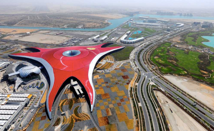 YAS ISLAND, Abu Dhabi, is home to Yas Waterworld, Warner Bros World, Ferrari World and a multitude of five star hotels. Ferrari World is the largest indoor theme park in the world, shaped like a massive three-pointed star. Visitors can see an operating Ferrari factory, take a spin on a real Ferrari, or bring up their breakfast on the “Formula Rossa,” a thrill ride that sets the world record for roller coaster rides.