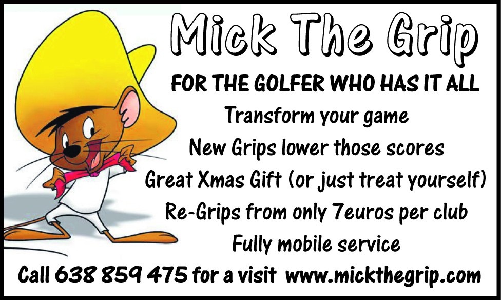 Contact Mick for regripping and repairs. Tel. 638 859 475.